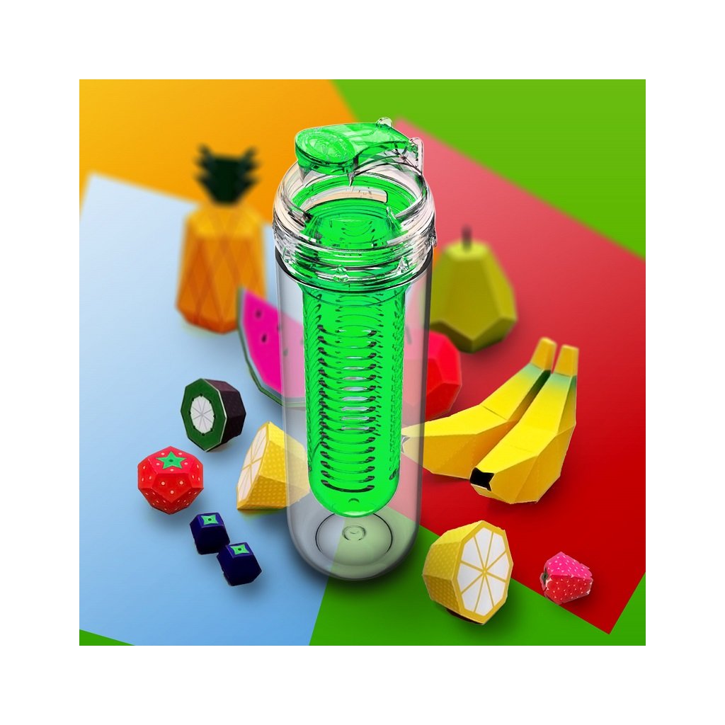 Zdravá fľaša s gigantickým objemom na ovocie, či bylinky. Potešte sa počas dňa chutnými nápojmi! Stačí ak si ráno nachystáte ovocie a počas dňa si fľašu dopĺňate vodou.