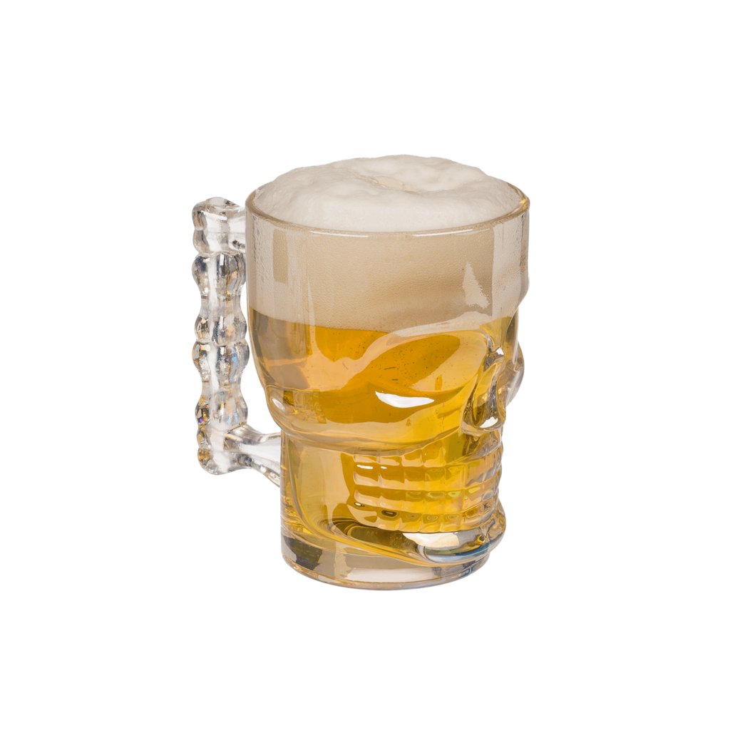 Drsné pivové poháre pre drsných chlapov na každý pravý pivný festival. Pivný krígeľ s dizajnom lebky. Koľko ich budete potrebovať aby ste sa priblížili vzoru na krígli?